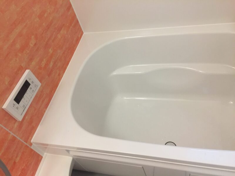 浴室は追い炊き機能付き、大きいタイプの浴槽で足を伸ばしてゆっくり浸かることができます。