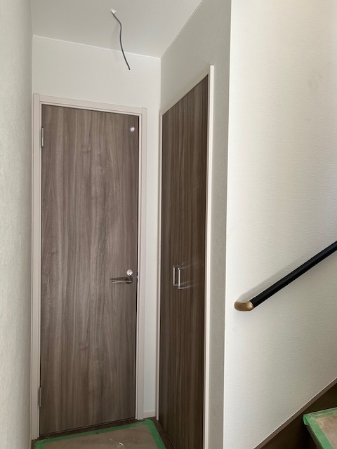 玄関ドアの鍵は電子キーです。開錠・施錠の操作が簡単で使いやすく、防犯にも役立ちます。