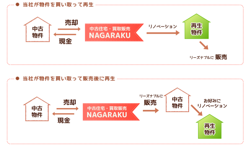 NAGARAKU(ながらく)は、皆さまから買取した中古住宅を永く利用できるように再生し、