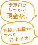新しい住居の決済日や新居への転居日など、売却後にお客様の新しい生活が始まるまでをサポートいたしますので、